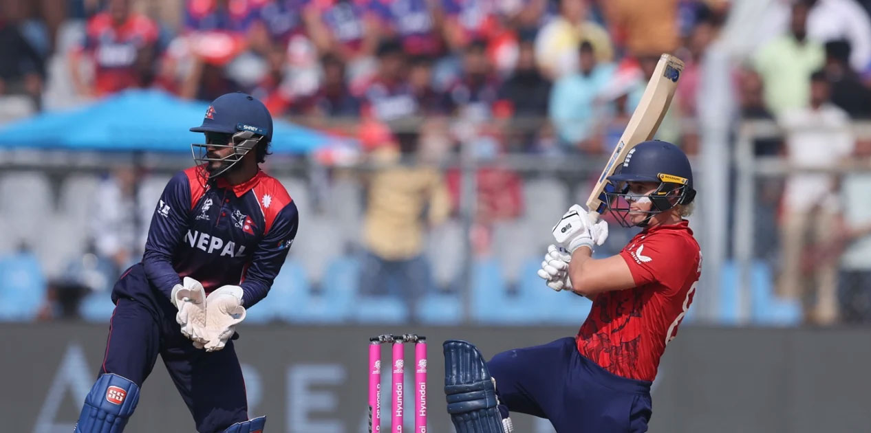 काठमाडौं । आइसीसी पुरुष टि–२० विश्वकप क्रिकेट प्रतियोगिताको पहिलो खेलमा नेपालले इङ्ल्यान्डसँग ४ रनले पराजित भयो । मुम्बईस्थित वानखेडे मैदानमा सम्पन्न खेलमा इङ्ल्यान्डले दिएको १८५ रनको लक्ष्य पहिल्याउने क्रममा नेपालले सबै ओभर खेल्दा ६ विकेटको