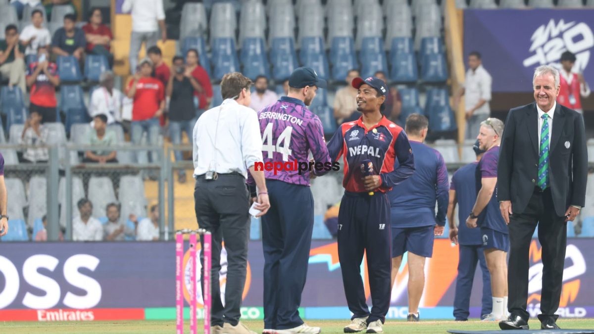 काठमाडौं । टी–२० विश्वकप अन्तर्गत नेपालले अन्तिम खेलमा जित निकालेको छ । भर्खरै सम्पन्न खेलमा नेपालले स्कटल्यान्डलाई ७ विकेटले हराएको हो । नेपालको यो २०१४ विश्वकपपछि पहिलो जित हो । १७१ रनको लक्ष्य नेपालले १९.२