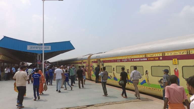 बिहीबार दिउँसो ‘भारत गौरव एसी पर्यटक’ नामक रेल जनकपुरधाम रेल्वे स्टेशनमा आइपुगेको हो।मधेस प्रदेशका मुख्यमन्त्री लालबाबु राउतले जनकपुरस्थित रेलवे स्टेसनमा उनीहरूलाई स्वागत गरे ।