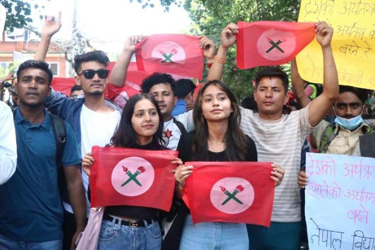 काठमाडौं । नेपाल राष्ट्र बैंकका गभर्नर महाप्रसाद अधिकारीलाई बर्खास्त गर्न माग गर्दै बालुवाटारमा प्रदर्शन भएको छ । कांग्रेस निकट नेपाल विद्यार्थी संघ र माओवादी केन्द्र निकट अखिल क्रान्तिकारीले संयुक्त रूपमा बालुवाटारमा विरोध प्रदर्शन गरेका हुन् ।