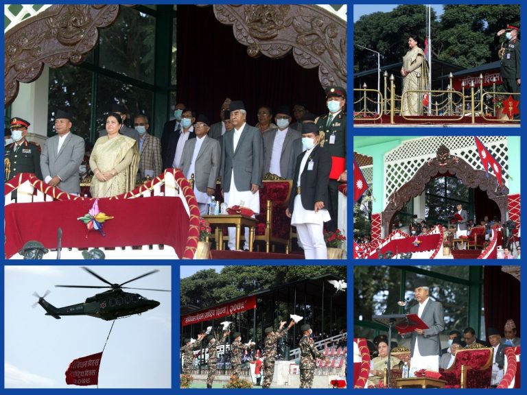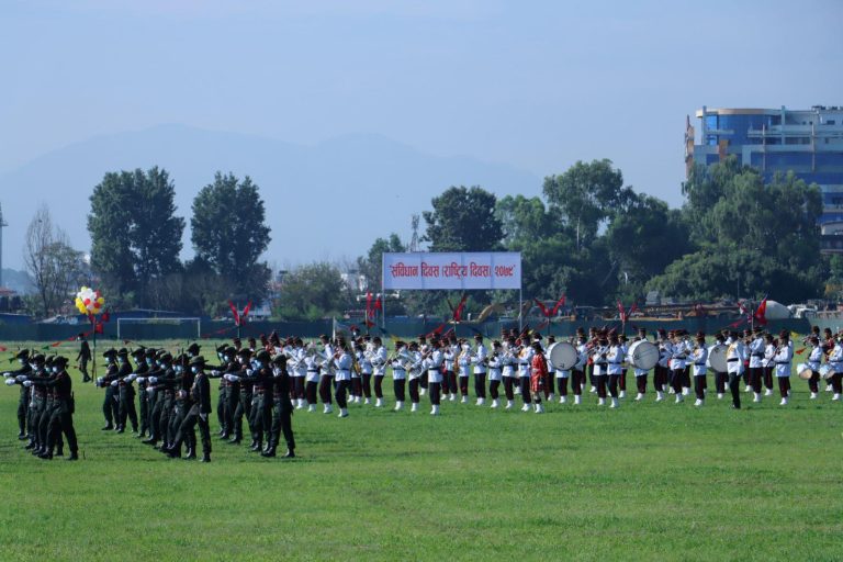 काठमाडौं । देशभर सोमबार संविधान दिवस विभिन्न कार्यक्रम गरी मनाइँदै छ । सोही क्रममा टुँडिखेलस्थित सैनिक मञ्चमा विशेष समारोहको आयोजना गरिएको छ ।