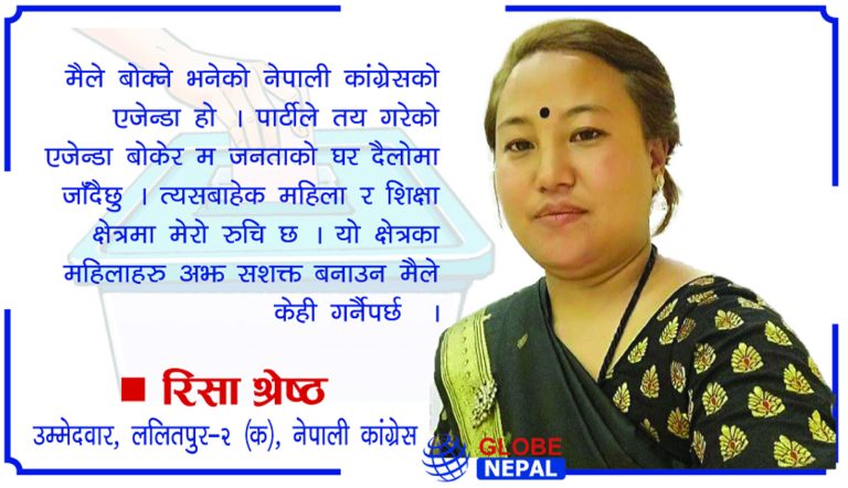 गठबन्धनबाट उम्मेदवार बनेकी रिसा के एजेन्डा बोकेर जनतामाँझ जाँदैछिन् ? यस विषयमा ग्लोब नेपालले गरेको कुराकानीको सम्पादित अंश यस्तो छ–