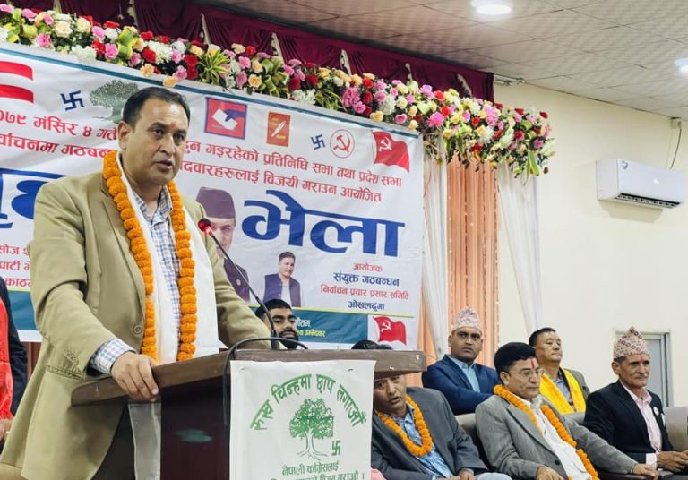 यस्तै भेला हिजो आइतबार प्रदेश १ को व्यापारिक केन्द्र इटहरीमा आयोजना गरिएको थियो । संघीय संसदको उम्मेदवार खतिवडाले भने, ‘घर–घरमा सबैलाई भेट्न सकिएन, यसलाई निम्तो मानेर मंसिर ४ गतेको निर्वाचनमा सहभागी भएर गठबन्धनलाई विजयी गराउन अनुरोध गरें ।’ उनले यदि गठबन्धनले जित्यो भने घुर्मी–चतरा हुँदै प्रदेश एकको राजधानी आउने बाटो पाँच वर्षमै पूरा गर्ने प्रतिबद्धता व्यक्त गरे ।