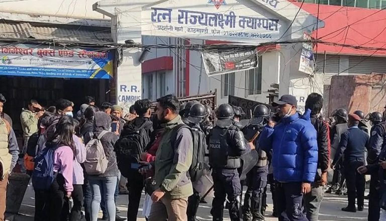 काठमाडौँ । काठमाडौँको प्रदर्शनीमार्गस्थित आरआर क्याम्पसमा खुकुरी प्रहार हुँदा तीन विद्यार्थी घाइते भएका छन्। स्ववियु निर्वाचनका विषयमा विद्यार्थी सङ्गठनका नेताहरूबिच विवाद हुँदा तीन जना विद्यार्थी नेता घाइते भएका हुन्।