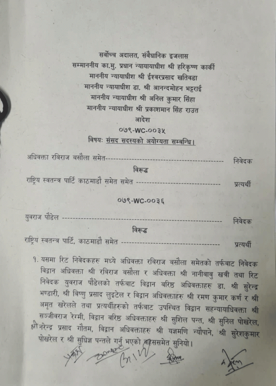 यस्ताे छ सर्वोच्च अदालतकाे आदेश :