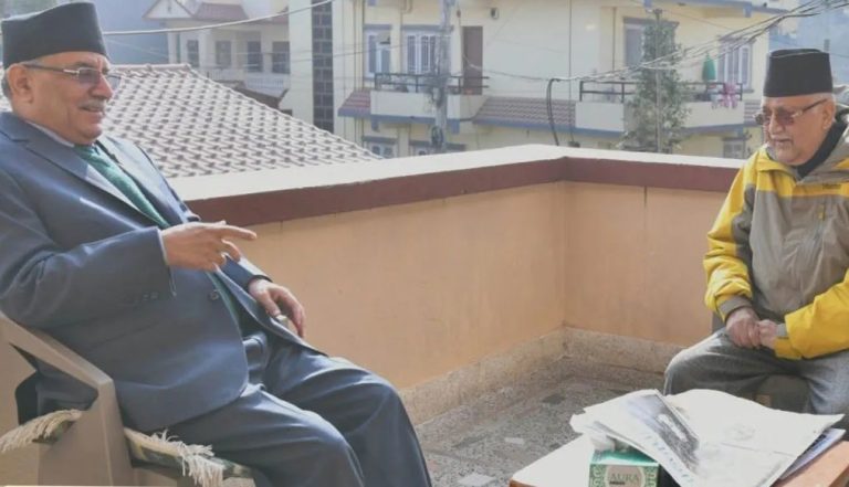काठमाडौँ । सत्ता साझेदार नेकपा (एमाले) का अध्यक्ष केपी शर्मा ओलीलाई भेट्न प्रधानमन्त्री पुष्पकमल दाहाल ‘प्रचण्ड’ सोमबार बिहान उनको निवास बालकोट पुगेका छन्। नवनियुक्त चिनियाँ राजदूत छन सोङसँग भेट गरेपछि एमाले अध्यक्ष ओली भेट्न बालकोट पुगेका हुन् । प्रधानमन्त्री प्रचण्ड प्रतिनिधिसभाबाट विश्वासको मत लिएपछि दोस्रो पटक बालकोट पुगेका हुन् ।