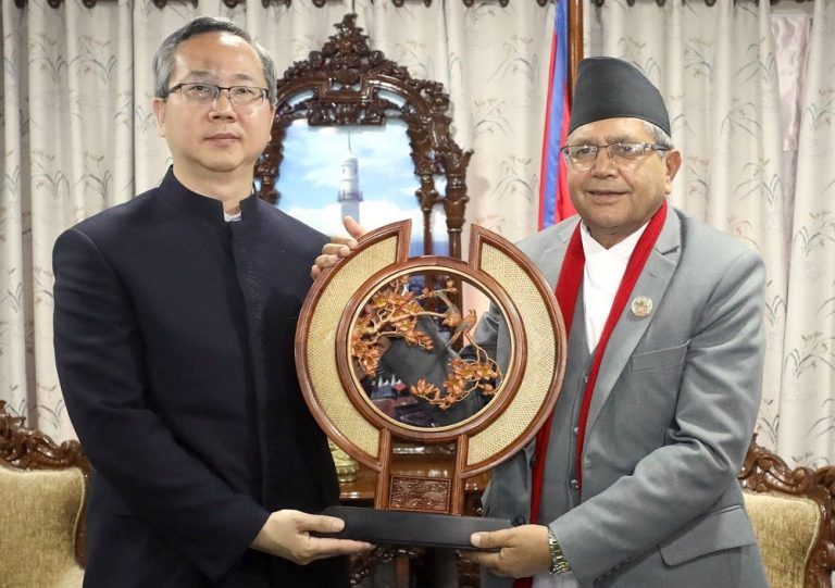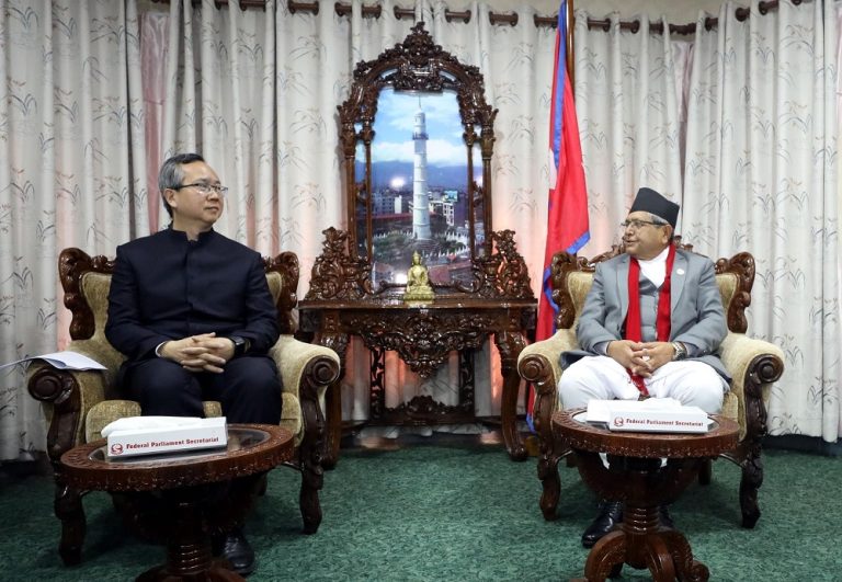 काठमाडौं । सभामुख देवराज घिमिरेसँग नेपालका लागि चीनका राजदूत छेन् सोङले शिष्टाचार भेट गरेका छन् । सिंहदरवारस्थित सभामुखको कार्यालयमा बुधबार भएको भेटमा दुईपक्षीय मैत्रीपूर्ण सम्बन्ध, संसदीय आदान प्रदान लगायतका विषयमा छलफल भएको छ । भेटमा चिनियाँ राजदूतले चीनको राष्ट्रिय जनकांग्रेस, स्थायी समितिका अध्यक्ष ली चान्शुले सभामुख घिमिरेलाई पठाएको शुभकामना सन्देश हस्तान्तरण गरेका छन् ।
