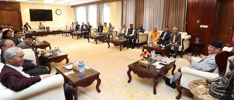 काठमाडौँ । सत्तारुढ गठबन्धनका शीर्ष नेताहरूले नेपाल बार एसोसिएसनका प्रतिनिधि तथा अधिवक्ताहरूसँग छलफल गर्दै सुझाव माग गरेका छन् । प्रधानमन्त्रीको सरकारी निवास बालुवाटारमा आज (शनिबार) दिउँसो सत्ता गठबन्धनका शीर्ष नेताहरूले अभिवक्ताहरूसँग छलफल गरेका हुन् ।