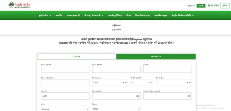 काग्रेसको सदस्यता लिनको लागि पार्टीको साइटमा उपलब्ध गराइएको फर्म भर्नुपर्ने हुन्छ । सदस्यता प्राप्त गर्नका लागि नाम, जन्ममिति, इमेल आइडी, मोबाइल नम्बर, राष्ट्रिय परिचयपत्र नम्बर, ठेगाना, ब्लड गु्रप, भाषा, पेशा प्रदेश, जिल्ला लगायतको विवरण भर्नुपर्दछ ।