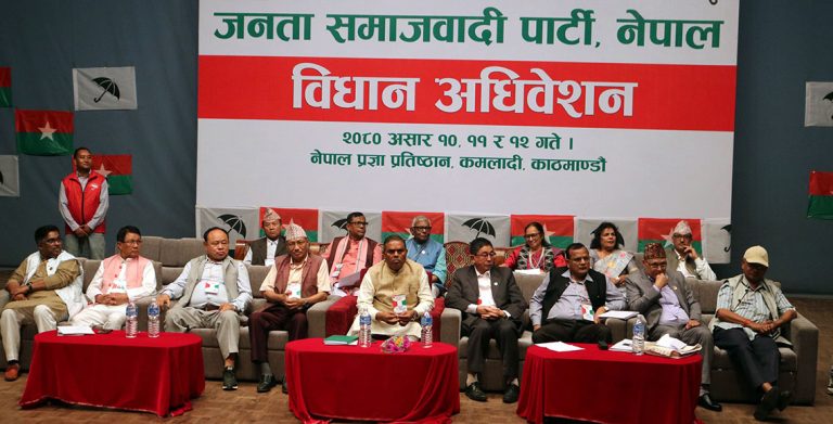 काठमाडौं । जनता समाजवादी पार्टी, नेपालको बिधान अधिवेशन जारी छ । गत आइतवारदेखि सुरु भएको बिधान अधिवेशन पुर्ववतः तालिका अनुसार आज समापन हुदैँछ । आजको बैठकमा मस्यौदा बिद्यानमाथि समूहगत छलफलमा उठेका प्रश्नको अध्यक्ष उपेन्द्र यादवलगायतका शीर्ष नेताले जवाफ दिने कार्यक्रम रहेको छ ।