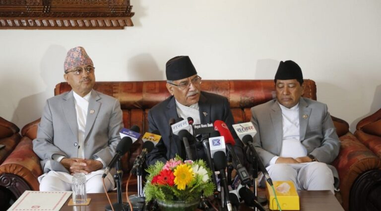 ‘राजनीतिक उद्देश्यको निम्ति हत्त न पत्त प्रधानमन्त्रीको राजीनामा मागिहाल्ने, अर्थमन्त्रीको राजीनामा मागिहाल्ने, गृहमन्त्रीको राजीनामा मागिहाल्ने संस्कार बस्न खोजेको छ, त्यो राम्रो होइन,’ प्रधानमन्त्री प्रचण्डले भने, ‘प्रधानमन्त्री, अर्थमन्त्री, गृहमन्त्रीको स्पष्टीकरण दिने मौका पनि नदिई राजीनामा दिने भए देऊ नत्र सदन चल्न दिँदैनौँ भनेर पहिल्यै घोषणा गर्ने राजनीति कल्चरले हामीलाई राम्रो ठाउँतिर लाँदैन ।’