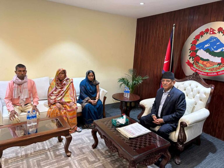 काठमाडौं । गौर हत्याकाण्डका पीडित संघर्ष समितिले प्रधानमन्त्री पुष्पकमल दाहाल प्रचण्डसँग भेट गरेका छन् । आज बिहान प्रधानमन्त्री निवास बालुवाटारमा पीडितहरुसँग प्रधानमन्त्री दाहालको भेटवार्ता भएको हो ।