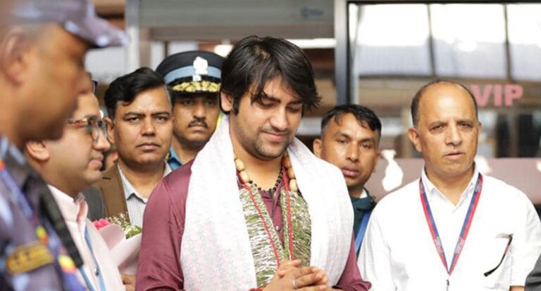 काठमाडौँ । भारतका चर्चित धार्मिक गुरु बागेश्वर बाबा ‘धीरेन्द्रकृष्ण शास्त्री’ नेपाल आएका छन् । नवलपरासीस्थित शाश्वत धाममा कथा वाचनका लागि उनी काठमाडौं आइपुगेका हुन् ।