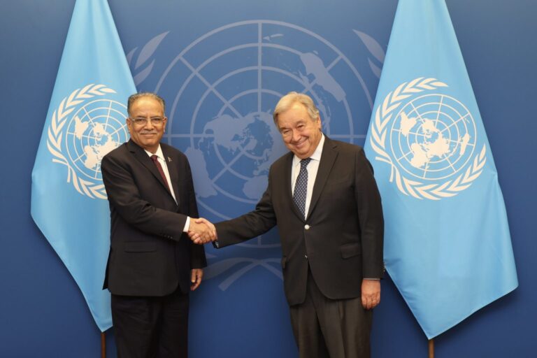 काठमाडौं । प्रधानमन्त्री पुष्पकमल दाहाल ‘प्रचण्ड’ र संयुक्त राष्ट्र संघका महासचिव एन्टोनियो गुटेरेसबीच भेटवार्ता भएको छ । उनीहरूबीच संयुक्त राष्ट्र संघको मुख्यालय भटवार्ता भएको हो ।