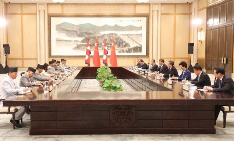काठमाडौँ । प्रधानमन्त्री पुष्पकमल दाहाल ‘प्रचण्ड’ र चीनका राष्ट्रपति सी चीनफिङबीच ऐतिहासिक भेटवार्ता सम्पन्न भएको छ । चीनको साताव्यापी भ्रमणका लागि शनिबार हाङ्चाउ आइपुगेका प्रधानमन्त्री दाहालले चीनियाँ राष्ट्रपति सीसँग द्विपक्षीय हितका विविध विषयमा खुला र स्पष्टरूपमा छलफल गरेको प्रधानमन्त्रीको सचिवालयले जनाएको छ ।