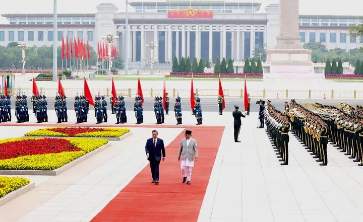 बेइजिङ । छिमेकी मित्रराष्ट्र चीनको भ्रमणमा रहनुभएका प्रधानमन्त्री पुष्पकमल दाहाल ‘प्रचण्ड’ लाई ग्रेट हल अफ दि पिपलमा ‘गार्ड अफ अनर’ प्रदान गरिएको छ ।