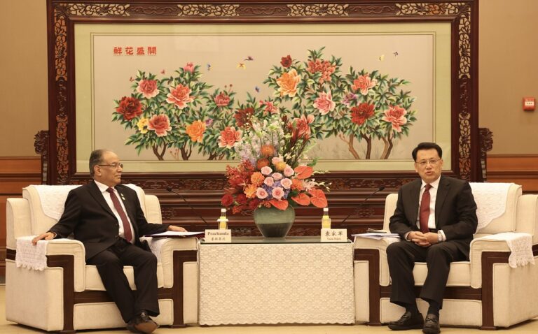 बेइजिङ । चीनको औपचारिक भ्रमणमा रहेका प्रधानमन्त्री पुष्पकमल दाहाल ‘प्रचण्ड’ले चिनियाँ कम्युनिष्ट पार्टीको केन्द्रीय समितिको राजनीतिक ब्युरो सदस्य एवं सो पार्टीको छोङछिङ महानगरपालिका सचिव युआन चियाचुनसँग भेटवार्ता गरेका छन् ।