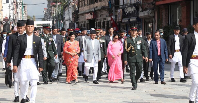 काठमाडौं । राष्ट्रपति रामचन्द्र पौडेल इन्द्रजात्रामा सहभागी हुन हिँडेरै जात्रास्थल वसन्तपुरमा पुगेका छन् । जुद्ध शमशेरको शालिकदेखि उनी हिँड्दै वसन्तपुर पुगेका हुन् ।
