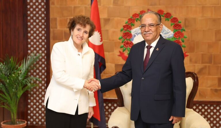 काठमाडौं । प्रधानमन्त्री पुष्पकमल दाहाल ‘प्रचण्ड’सँग अमेरिकी सहयोग परियोजना एमसिसीका प्रमुख कार्यकारी अधिकृत एलिस अलब्राइटले आज शिष्टाचार भेट गरेकी छन् ।