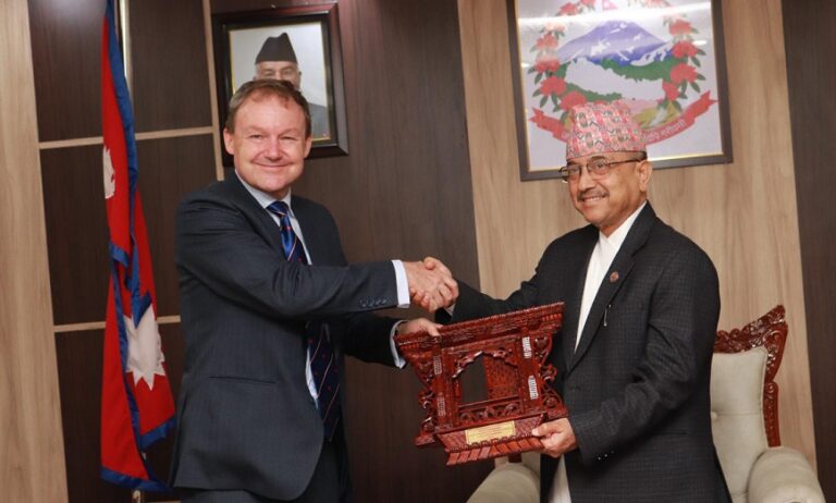 काठमाडौं । उपप्रधानमन्त्री तथा रक्षामन्त्री पूर्णबहादुर खड्कासँग नेपालका लागि बेलायतका राजदूत रोब फेनले शिष्टाचार भेट गरेका छन् ।