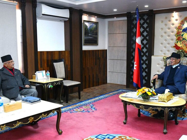 प्रधानमन्त्री प्रचण्ड र अध्यक्ष ओलीबीच भेटवार्ता