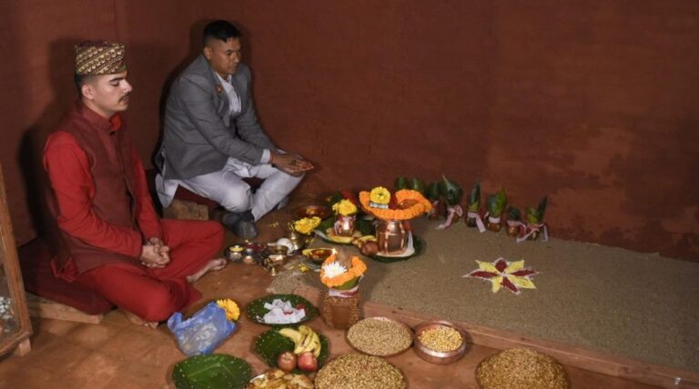 काठमाडौं । हनुमानढोकास्थित दसैँ घरमा विधिपूर्वक जमरा राखिएको छ । नवरात्रको पहिलो दिन आज नेपाल पञ्चाङ्ग निर्णायक विकास समितिले उपलब्ध गराएको उत्तम साइत बिहान ११ बजेर २९ मिनेटमा घटस्थापना गरिएको हो । विधिपूर्वक घट अर्थात् घडा स्थापना गरी त्यही घडामाथि शक्तिस्वरुपा दुर्गाको पूजा आराधना गरिने भएकाले आजका दिनलाई घटस्थापना भन्ने गरिन्छ । आज स्थापना गरिएको पूर्ण कलशको जलले अभिषेक गर्नाका साथै विजया दशमीका दिनमा दुर्गा देवीको प्रसाद ग्रहण गर्ने प्रचलन छ ।