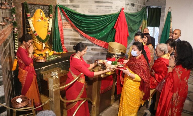पूर्वराष्ट्रपति भण्डारीद्वारा लिङ्ग भैरवी मन्दिरमा पूजा