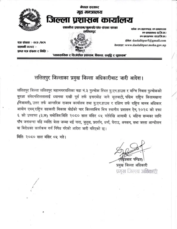 ललितपुरको पुलचोक आसपास क्षेत्रमा ६ महिना निषेधाज्ञा