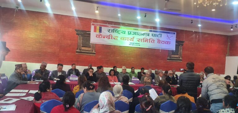 काठमाडौं । राष्ट्रिय प्रजातन्त्र पार्टीको केन्द्रीय कार्यसमितिको बैठक आज पनि जारी रहनेछ । गत पुस १ गते देखी जारी केन्द्रिय समिति बैठकमा बिभिन्न प्रतिवेदन माथीको छलफल सकिए पनि निर्णय लिनु पर्ने भएकाले आजसम्म बैठक सञ्चालन हुन लागेको हो ।