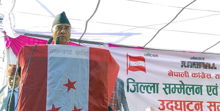 दमौली । नेपाली कांग्रेसका सभापति एवं पूर्वप्रधानमन्त्री शेरबहादुर देउवाले संघीय लोकतान्त्रिक गणतन्त्रलाई सुदृढ बनाउनुपर्ने बताएका छन् । नेपाली कांग्रेस तनहुँले आज यहाँ आयोजना गरेको जिल्ला सम्मेलन तथा भवन उद्घाटन कार्यक्रमलाई सम्बोधन गर्दै देउवाले गणतन्त्रको विकल्प नभएको बताए ।