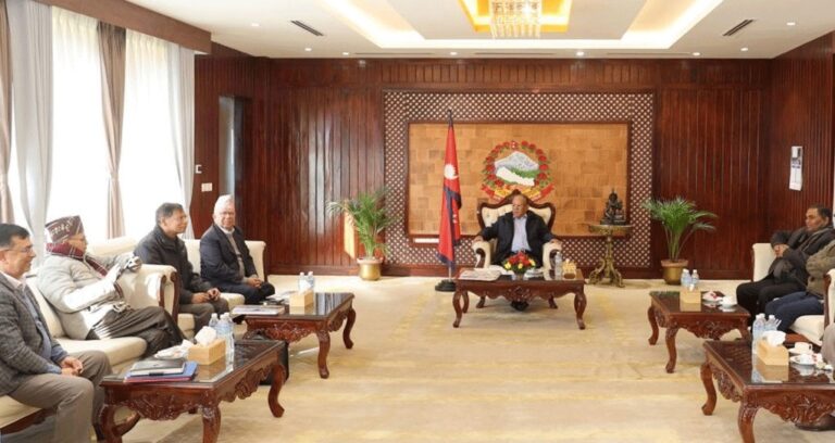 काठमाडौँ । प्रधानमन्त्री निवास बालुवाटारमा समाजवादी मोर्चाको बैठक जारी छ । बैठकमा मोर्चामा आबद्ध दलका शीर्ष नेताहरू सहभागी छन् । बैठकमा सरकारको एक वर्षको समीक्षाका आगामी राष्ट्रिय सभा निर्वाचन र मोर्चाको गतिविधिका विषयमा छलफल भइरहेको छ ।