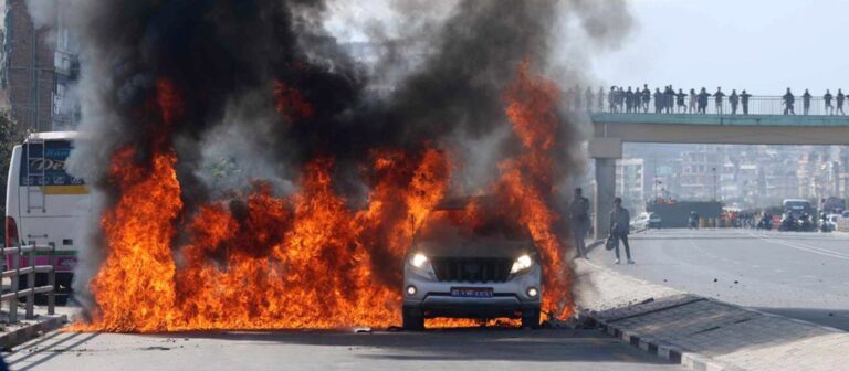 शुक्रबार मध्यान्ह भौतिक, पूर्वाधार तथा यातायात मन्त्री प्रकाश ज्वालाको गाडीमा प्रदर्शनकारीहरुले आगजनी गरेका हुन् । आन्दोलन उग्र बन्दै गएपछि प्रहरीले प्रदर्शनकारीलाई तितर वितर बनाउन अश्रुग्यास प्रहार गरेको छ ।