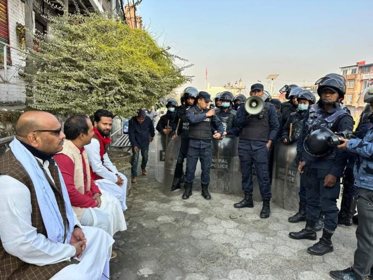 ‘धोती दिवस मनाउन माइतीघर जान लाग्दा आर्ट काउन्सिलबाट अध्यक्षसहित हामीलाई पक्राउ गरेर महेन्द्र पुलिस क्लब ल्याएको छ’, थुनामा रहेका साहले भने, ‘यहाँ ७३ जना छौं, थप अरूलाई अर्को ट्रकमा हालेर अन्यत्र लगेको छ ।’ मधेसी समुदायले अंग्रेजी नयाँ बर्षमा हरेक पटक धोती दिवस मनाउँदै आएका छन् ।