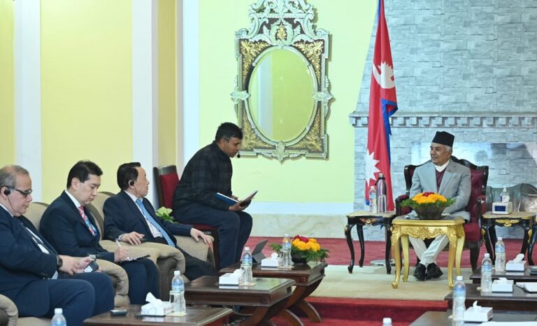 काठमाडौँ । राष्ट्रपति रामचन्द्र पौडेलसमक्ष संयुक्त राष्ट्रसंघीय खाद्य तथा कृषि संगठन (एफएओ) का महानिर्देशक डा क्यू डोङ्ग्यूको नेतृत्वमा आएको प्रतिनिधिमण्डलले शिष्टाचार भेट गरेको छ ।