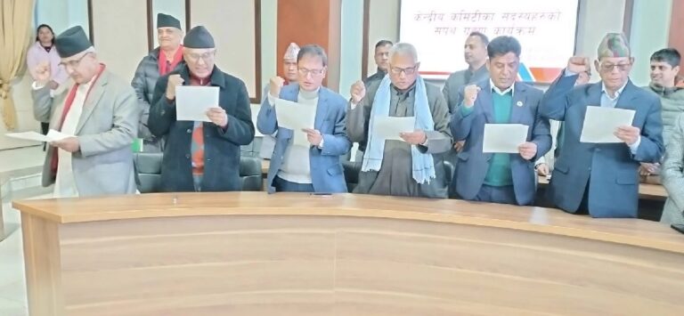 काठमाडौँ । नेकपा एमालेको केन्द्रीय सदस्य पदमा मनोनीत ६ जनाले शपथ लिएका छन् । गत पुस २० गते बसेको एमाले सचिवालय बैठकले ५ पूर्व प्रदेश अध्यक्ष र एक जिल्ला अध्यक्षलाई केन्द्रीय सदस्य मनोनीत गरेको थियो ।