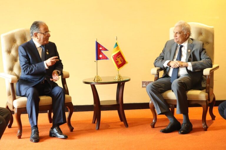 काठमाडौँ । प्रधानमन्त्री पुष्पकमल दाहाल ‘प्रचण्ड’ र श्रीलंकाका राष्ट्रपति रनिल विक्रमासिंघेबीच भेटावार्ता भएको छ । असंलग्न आन्दोलन (नाम) का सदस्य राष्ट्रको १९औँ सम्मेलनमा भाग लिन युगाण्डाको कम्पालामा रएका उनीहरुबीच आज द्विपक्षीय भेटवार्ता भएको हो ।