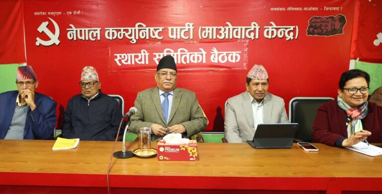 काठमाडौँ । नेकपा माओवादी केन्द्रको स्थायी कमिटी बैठक बसिरहेको छ ।