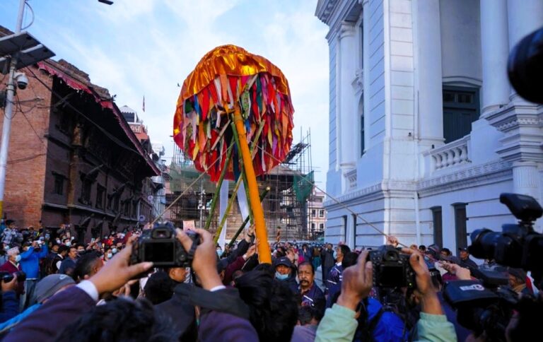 काठमाडौं । काठमाडौँको वसन्तपुर अगाडि विधिवत् रूपमा आज बिहान चीर ठड्याइएको छ । फागुन शुक्ल अष्टमीका दिन हनुमानढोका दरबारको गद्दी बैठकको दक्षिणतर्फ चीर ठड्याइपछि राजधानी लगायत मुलुकभर औपचारिक रूपमा फागु अर्थात् होली पर्व सुरु भएको मानिन्छ ।