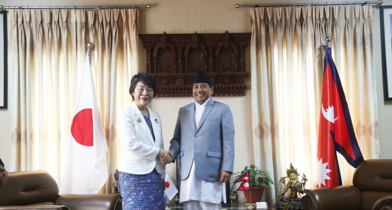 काठमाडौँ । परराष्ट्रमन्त्री नारायणकाजी श्रेष्ठ र नेपाल भ्रमणमा रहेकी जापानकी परराष्ट्र मन्त्री खामिखावा योकोबीच भेटवार्ता भएको छ । आइतबार दिउँसो परराष्ट्र मन्त्री श्रेष्ठ र जापानकी परराष्ट्र मन्त्री योकोबीच सिंहदरबारमा भेटवार्ता भएको हो ।