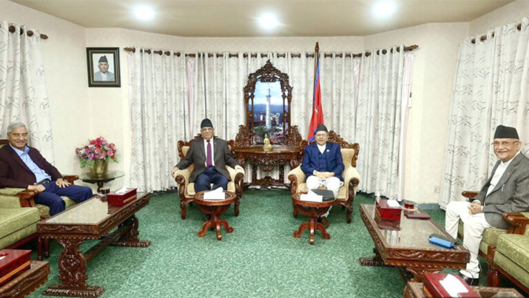 काठमाडौं । सभामुख देवराज घिमिरले आज विहान साढे ११ बजे सिंहदरबारस्थित सभामुखको कार्यकक्षमा प्रधानमन्त्रीसहित प्रमुख दलका शीर्ष नेताहरूसँग छलफल गर्दै छन् ।