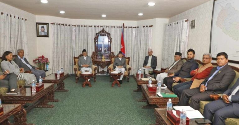 काठमाडौँ । सभामुख देवराज घिमिरेले आह्वान गरेको प्रमुख राजनीतिक दलका शीर्ष नेताहरुको बैठकमा प्रतिनिधिसभाको बैठकलाई नियमितरुपमा बाधारहित सञ्चालन गर्ने विषयमा छलफल भएको छ ।