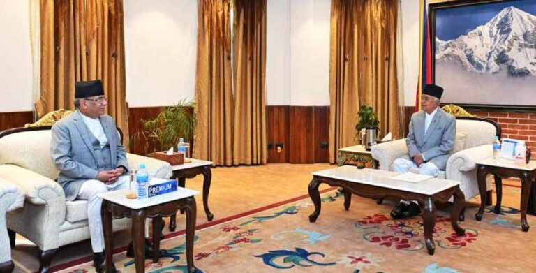 काठमाडौं । राष्ट्रपति रामचन्द्र पौडेलसँग प्रधानमन्त्री पुष्पकमल दाहाल ‘प्रचण्ड’ले भेट गरेका छन् ।