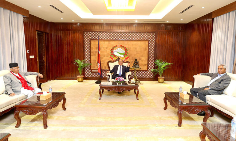 प्रधानमन्त्री पुष्पकमल दाहाल प्रचण्ड, नेकपा एमाले अध्यक्ष केपी शर्मा ओली र राष्ट्रिय स्वतन्त्र पार्टीका सभापति रवि लामिछानेबीच जारी छलफलमा कांग्रेसका सभापति शेरबहादुर देउवासहित महामन्त्री गगन थापा, राष्ट्रियसभा संसदीय दलका नेता कृष्णप्रसाद सिटौला र प्रमुख सचेतक रमेश लेखक बालुवाटार पुगेका हुन् ।