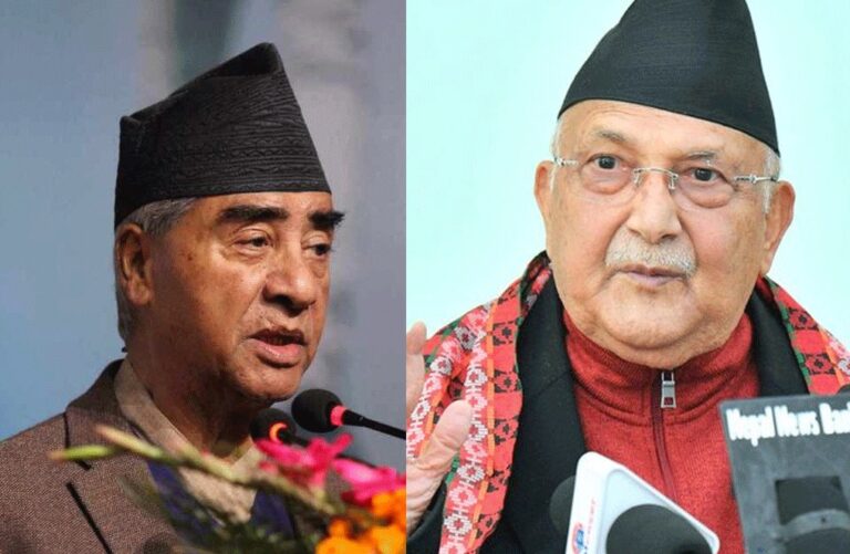 काठमाडौँ । नेपाली काँग्रेसका सभापति शेरबहादुर देउवा र नेकपा एमालेका अध्यक्ष केपी शर्मा ओलीबीच शनिबार भेटवार्ता भएको छ ।