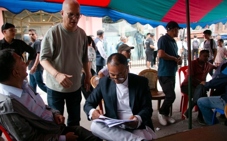 काठमाडौं । काठमाडौंको न्युरोडमा फुटपाथ विस्तारको विरोधमा काठमाडौं महानगरपालिका–२२ ले सोमबार पनि सडकबाटै नागरिकलाई सेवा दिने जनाएको छ । आइतबारदेखि वडाध्यक्ष चिनीकाजी महर्जनलगायतले वडाको काम सडकमा पाल टाँगेर गर्न थालेका हुन् ।
