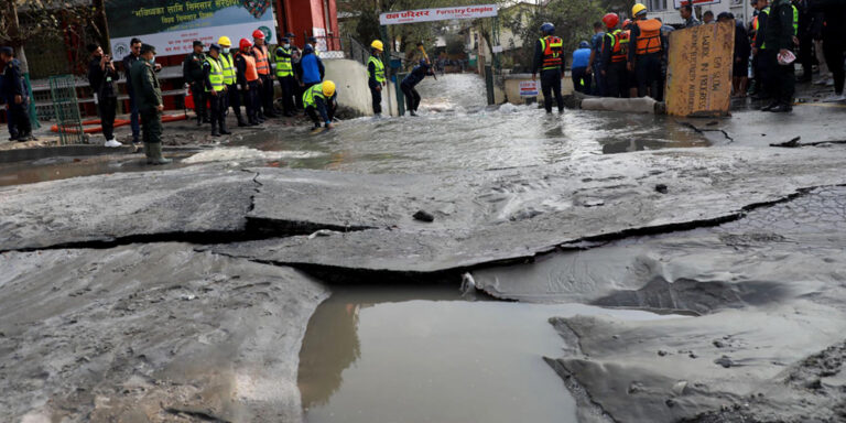 काठमाडौं । नेपाल विद्युत प्राधिकरणले विद्युतका तार भूमिगत गर्नका लागि ‘होरिजोन्टल ड्रिलिङ’ गर्ने क्रममा बुधबार बबरमहलमा रहेको खानेपानीको थोक वितरण प्रणालीको फुटेको पाइप मर्मत कार्य जारी छ ।