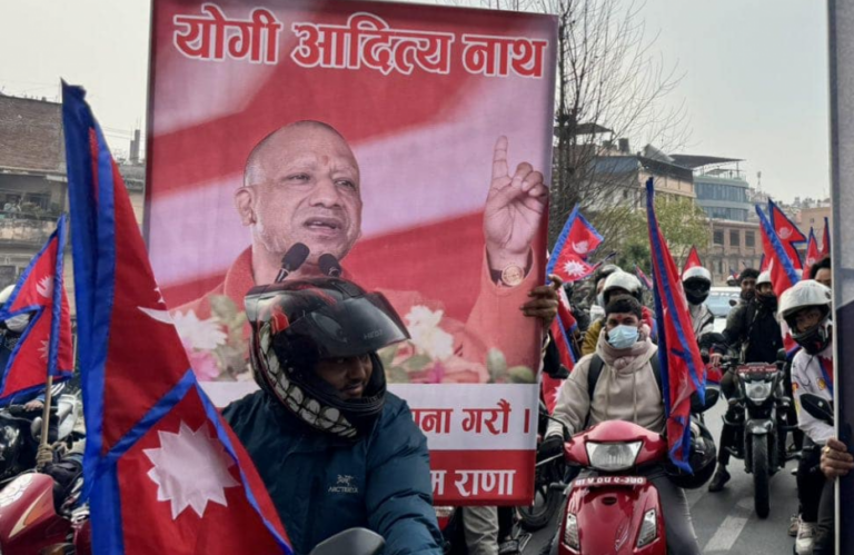 राजावादीको र्‍यालीमा भारतीय नेता योगी आदित्यनाथको ब्यानर