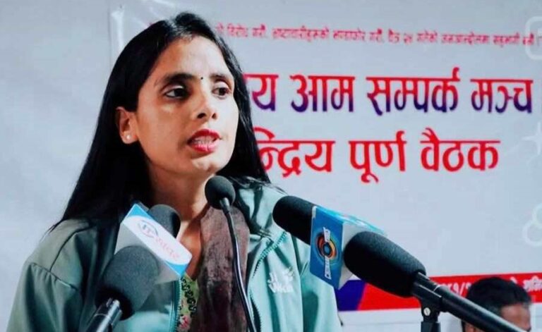 ‘असफल भईसकेको सरकार जनताको समस्या, माग, आवश्यक्ताको बारेमा बेखबर छ । कुनै चासो नै छैन् । तर एमालेका अध्यक्ष केपी शर्मा ओली सरकारको नेतृत्व गर्दै सरकार र सडकबाट तमासा गर्दै हिडेका छन् । यसरी देश र जनताको चाहना, आवश्यक्ता पुरा हुदैन्,’ उनले भनिन् ।