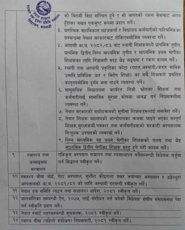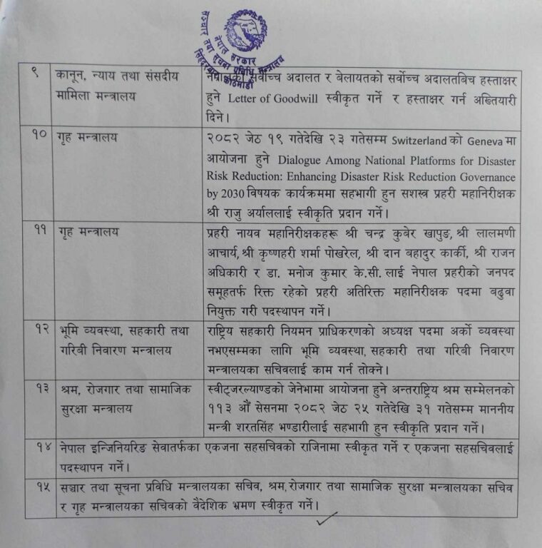 सरकारले मंगलबार १५ र बुधबार १४ वटा निर्णय गरेको छ ।