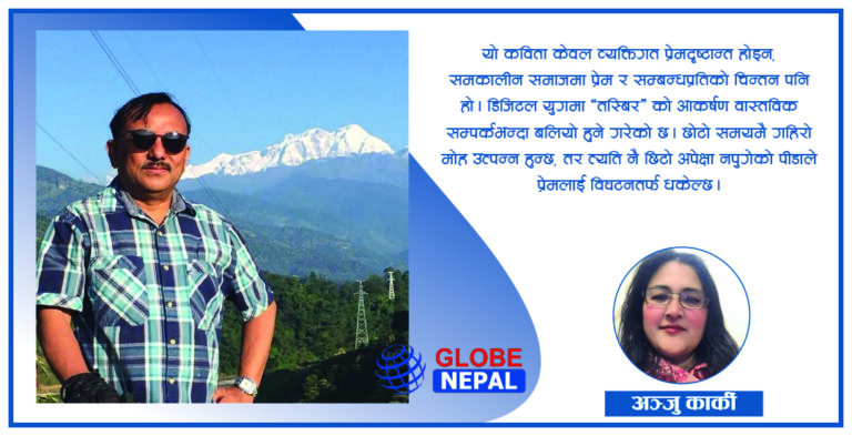 यो कविता केवल व्यक्तिगत प्रेमदृष्टान्त होइन, समकालीन समाजमा प्रेम र सम्बन्धप्रतिको चिन्तन पनि हो। डिजिटल युगमा “तस्बिर”को आकर्षण वास्तविक सम्पर्कभन्दा बलियो हुने गरेको छ। छोटो समयमै गहिरो मोह उत्पन्न हुन्छ, तर त्यति नै छिटो अपेक्षा नपुगेको पीडाले प्रेमलाई विघटनतर्फ धकेल्छ।